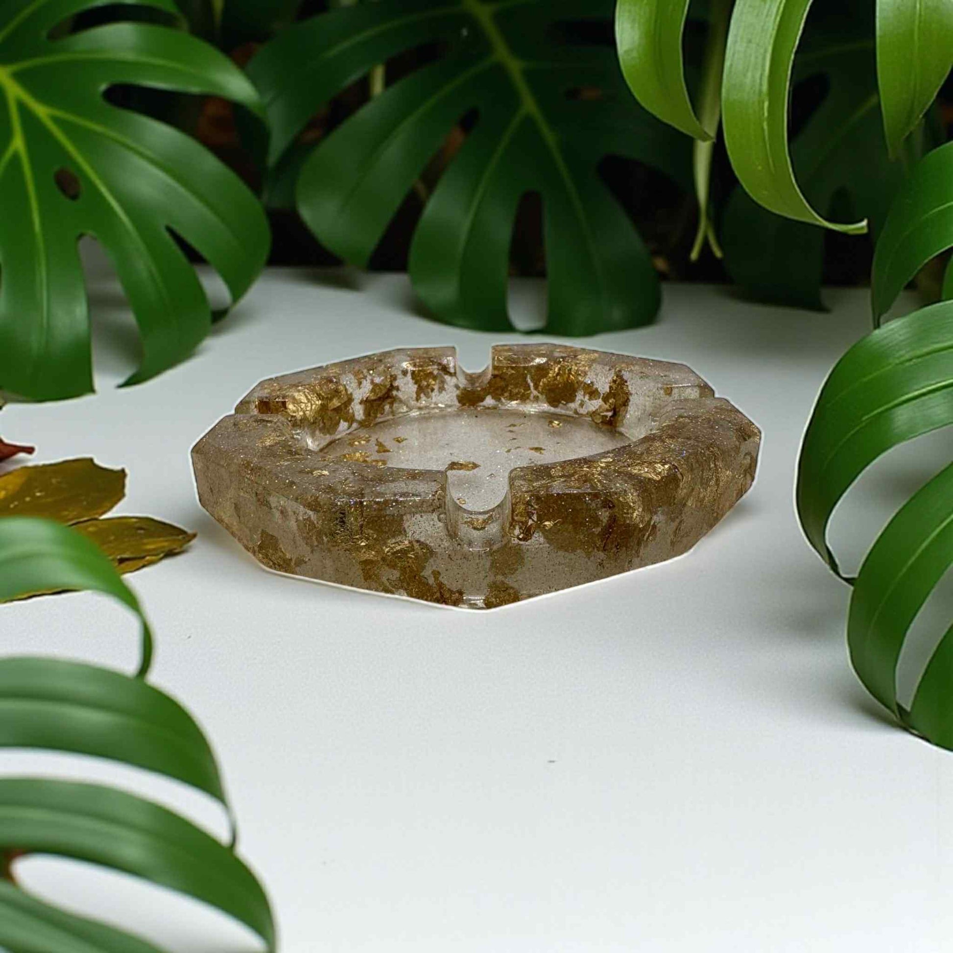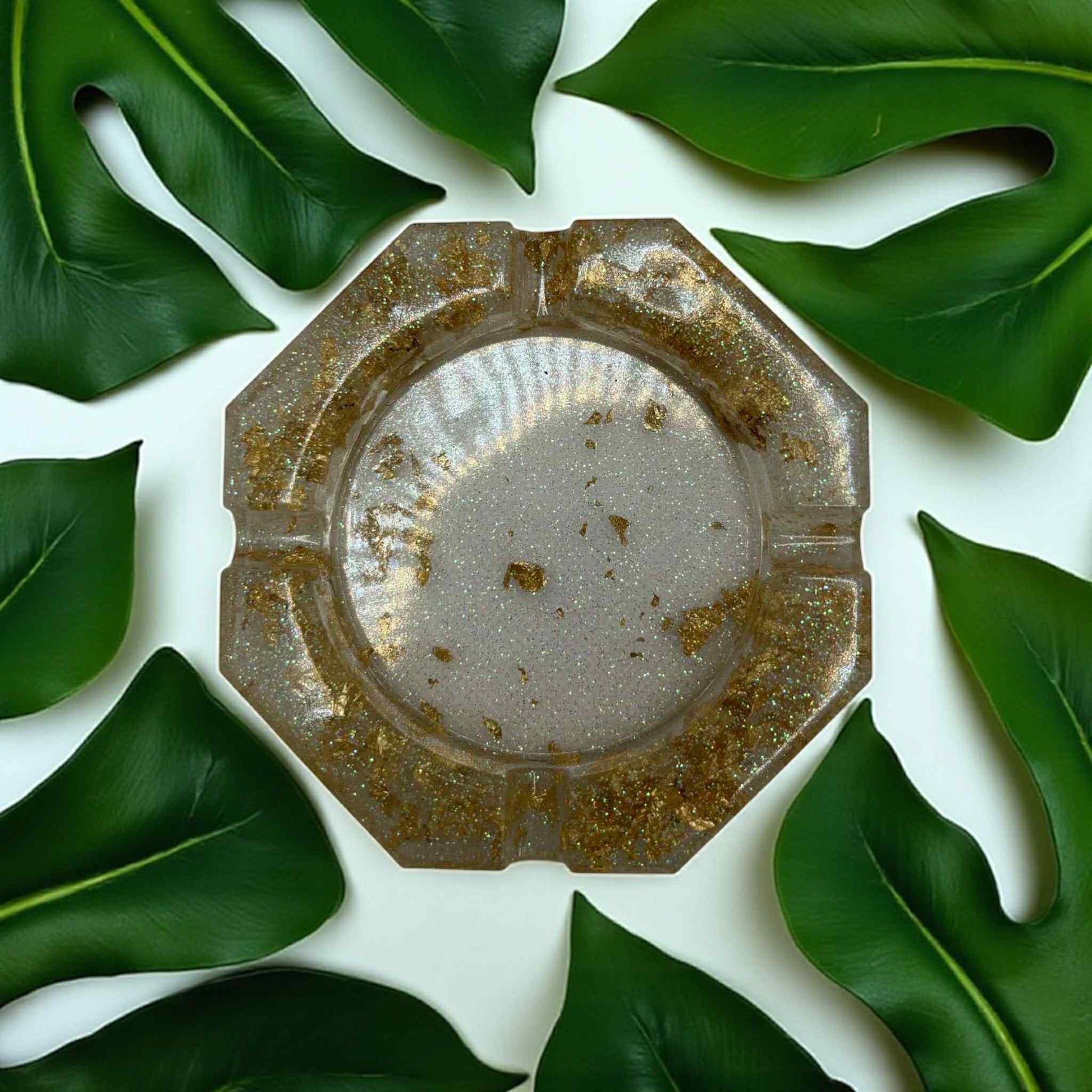 Add a touch of glamour to your smoking experience with our Gold Leaf Ashtray! Made with real gold leaf and sparkling glitter, this handmade resin ashtray will elevate your smoking sessions. Perfect for any smokers who want a touch of luxury in their routine.