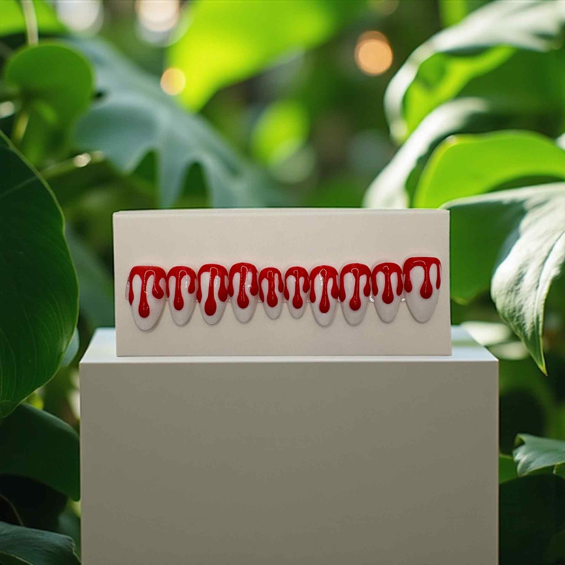 Get ready for Halloween with our Spooky Blood Drip Press on Nails! These homemade nails are perfect for adding a touch of fright to any costume. Easy to apply and comfortable to wear, these nails will complete your look and leave an impression. Don't miss out on these must-have Halloween essentials!