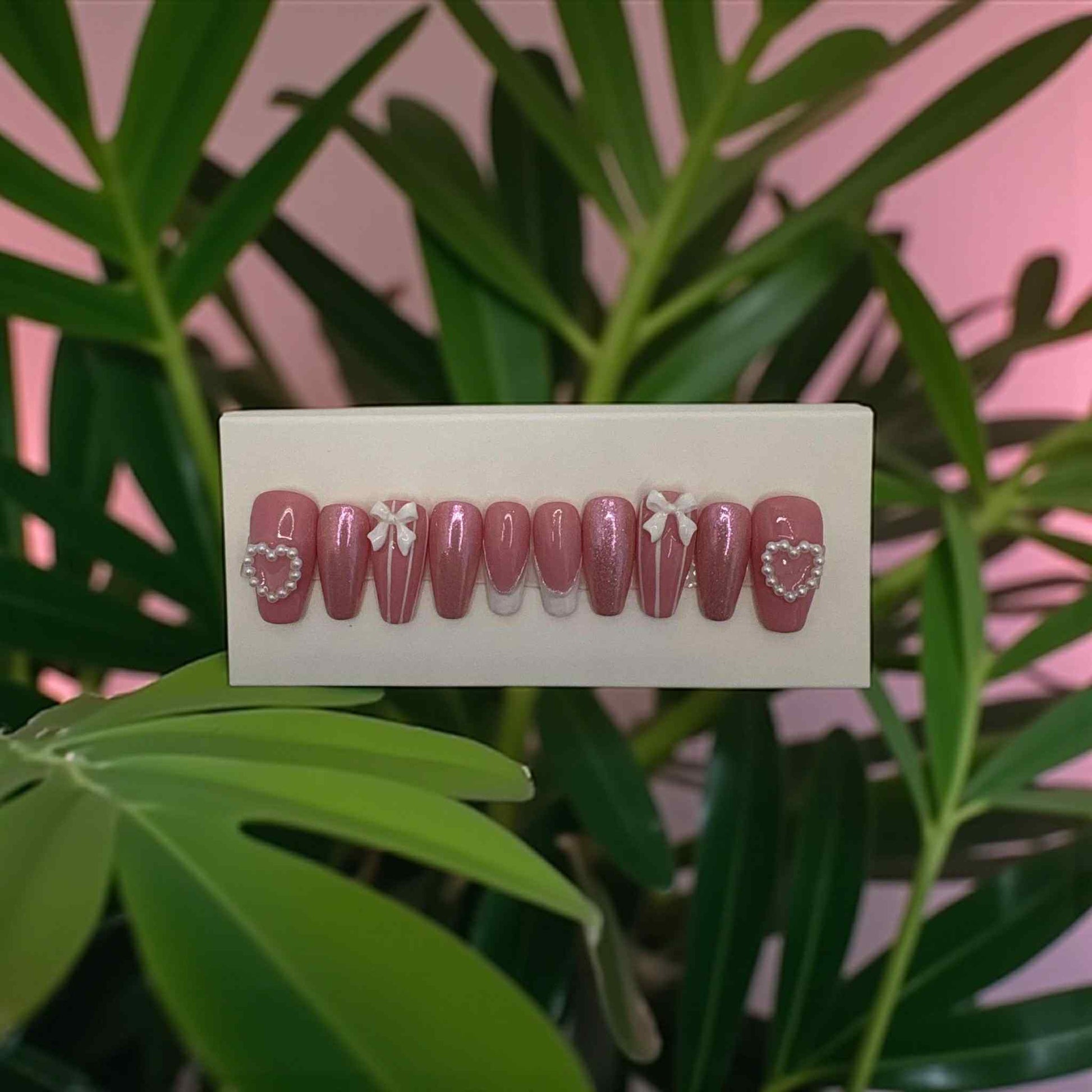 Add a touch of girly style to your look with our Pink Press on nails. Each set features charming pink bows and are expertly hand-crafted for a homemade touch. Elevate your nail game with these fun and flirty press ons.