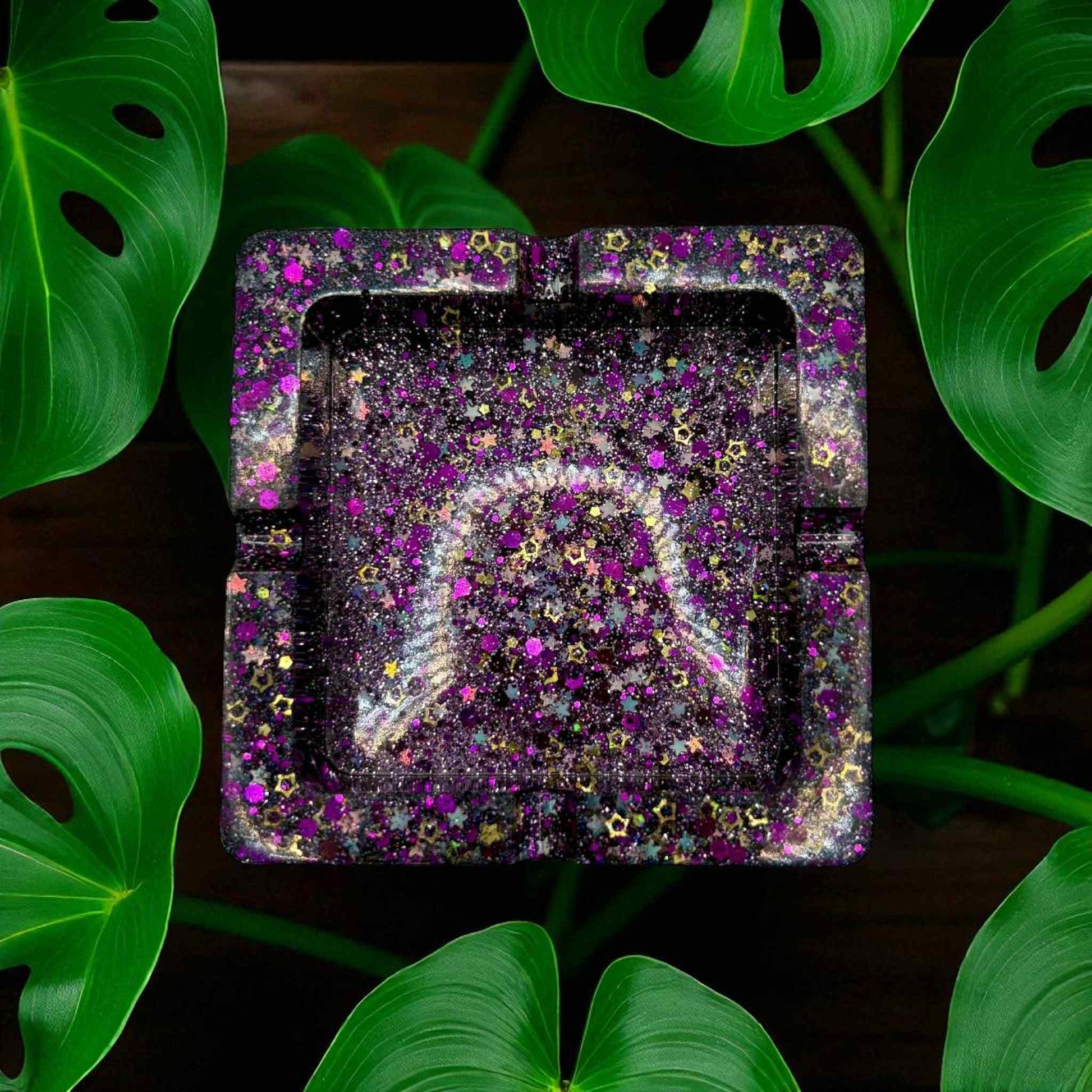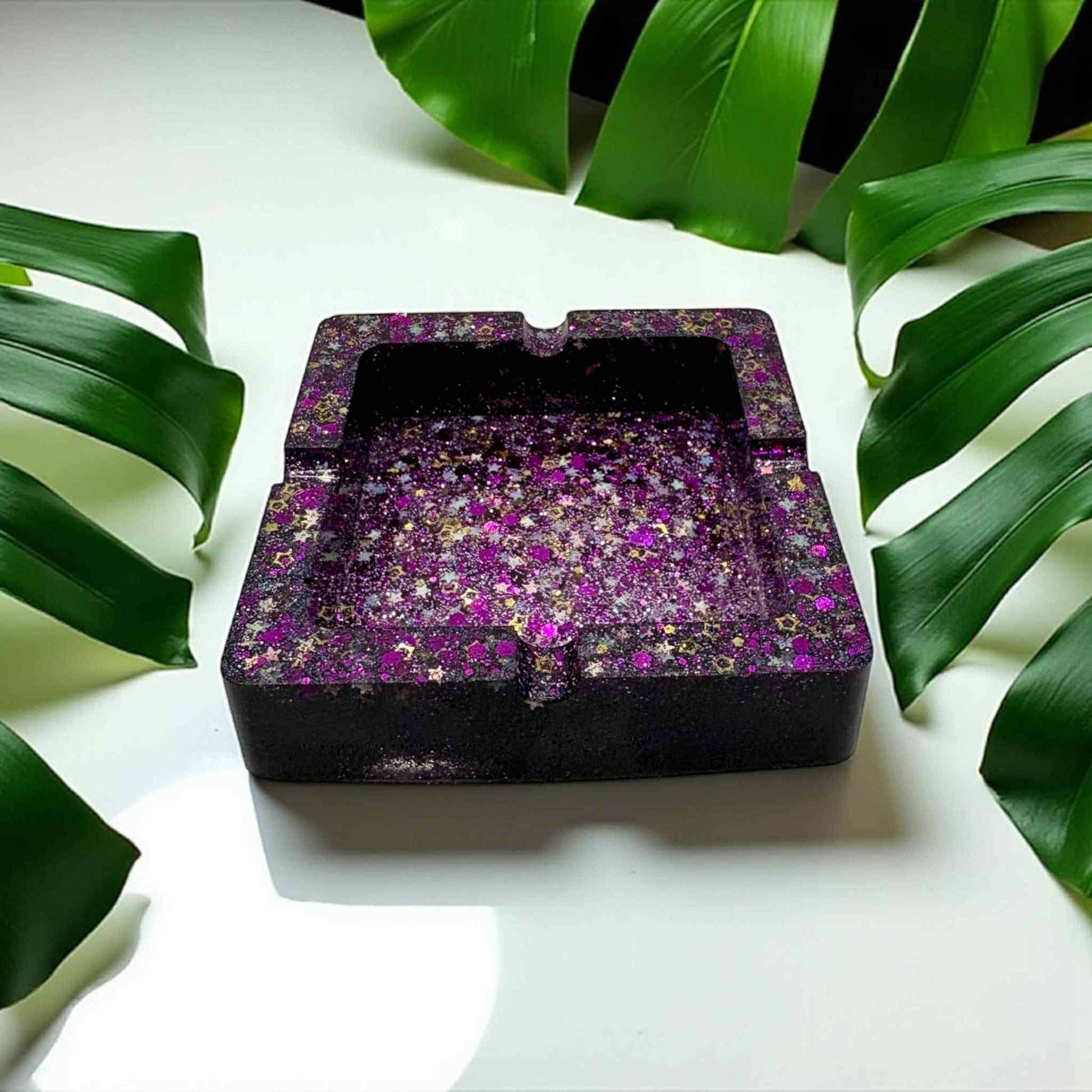 Transform any smoking experience with our Purple Star Ashtray! This homemade ashtray features a stunning purple star design with shimmering glitter accents. Its unique and eye-catching appearance will add a touch of glamour to any room. Say goodbye to boring ashtrays and elevate your smoking style with our Purple Star Ashtray!